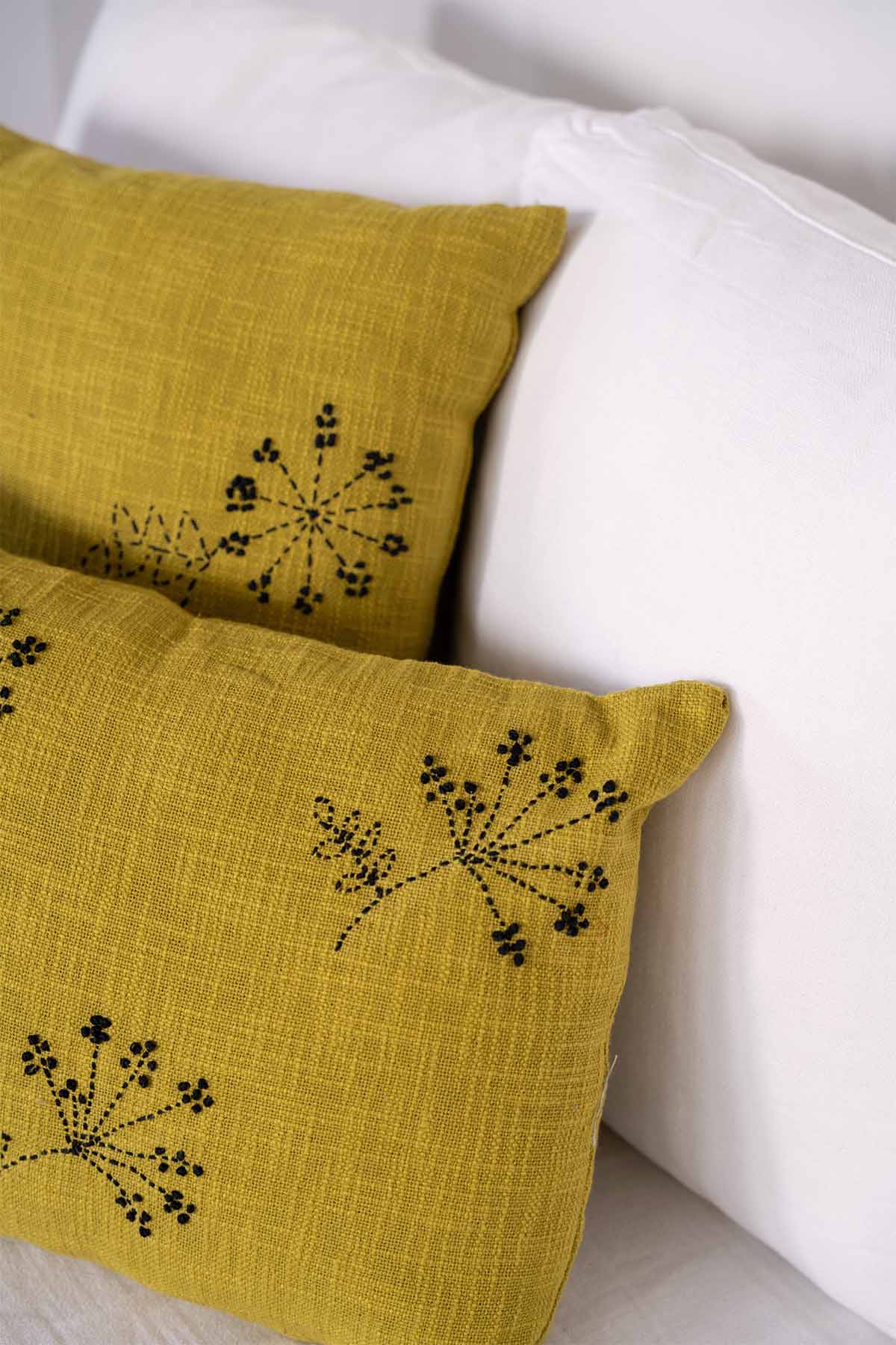 Almohadón con bordados en negro.