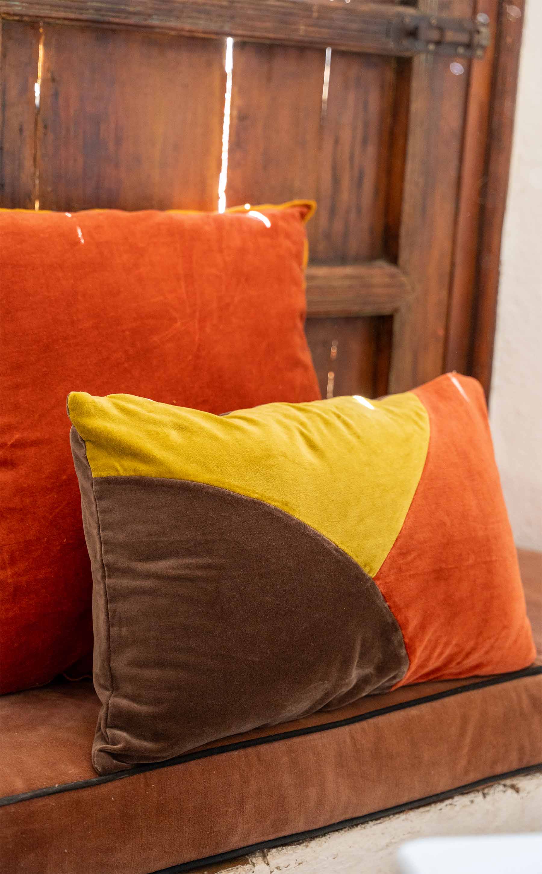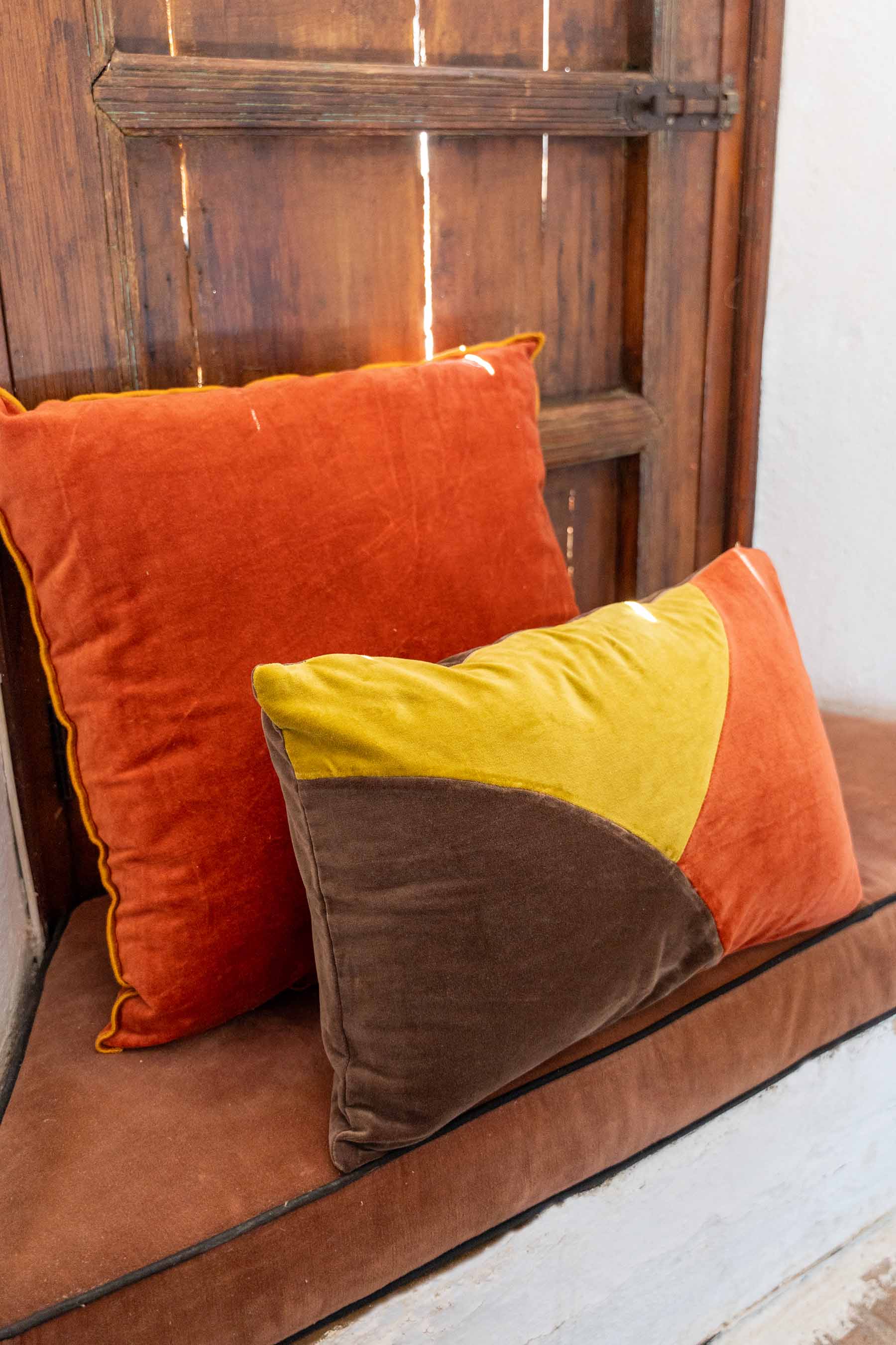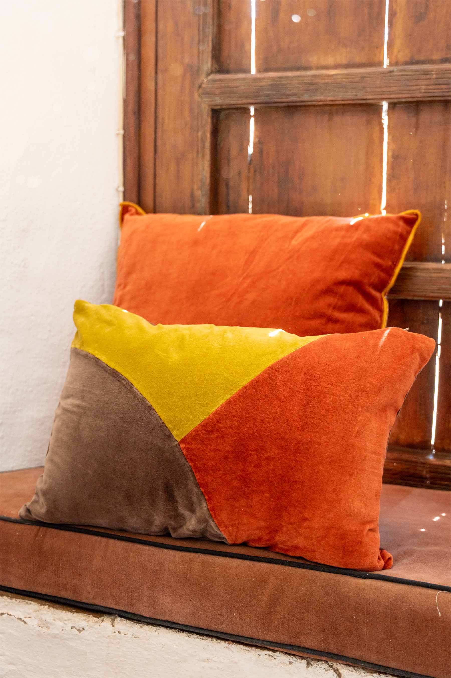 Almohadón de terciopelo de algódon con cierre con cremallera.