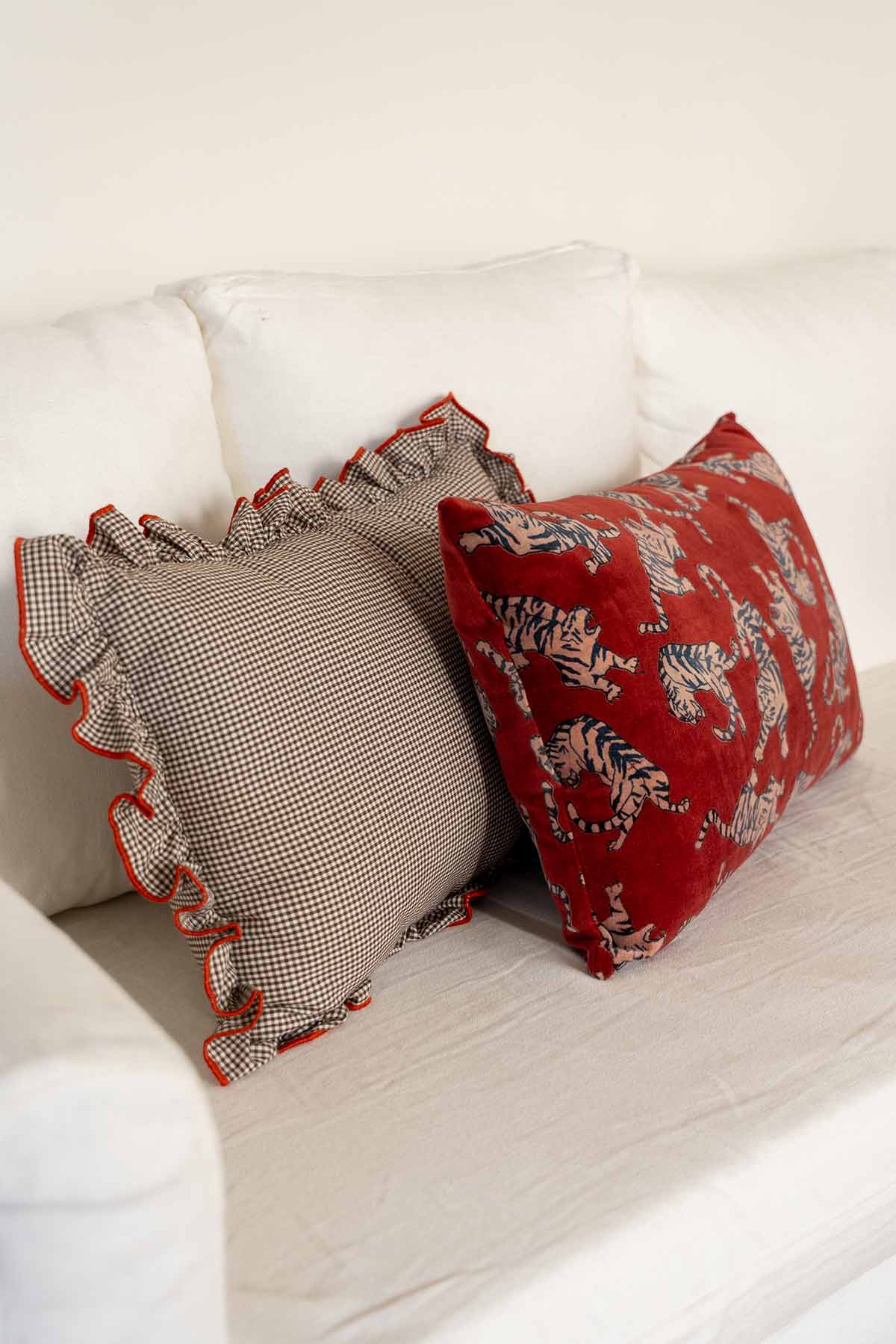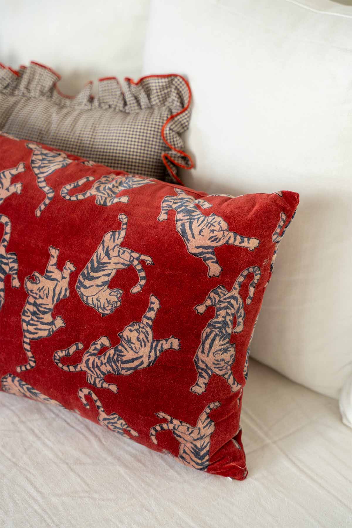 Almohadón terciopelo de algodón con cierre de cremallera invisible.