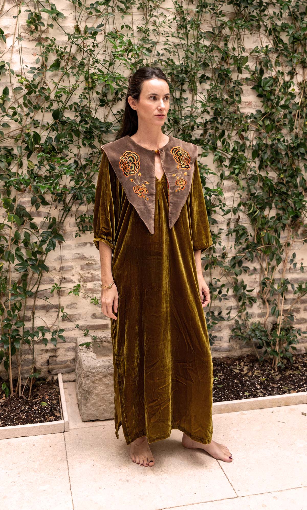 Cuello en terciopelo con flores bordadas con cierre con botón.