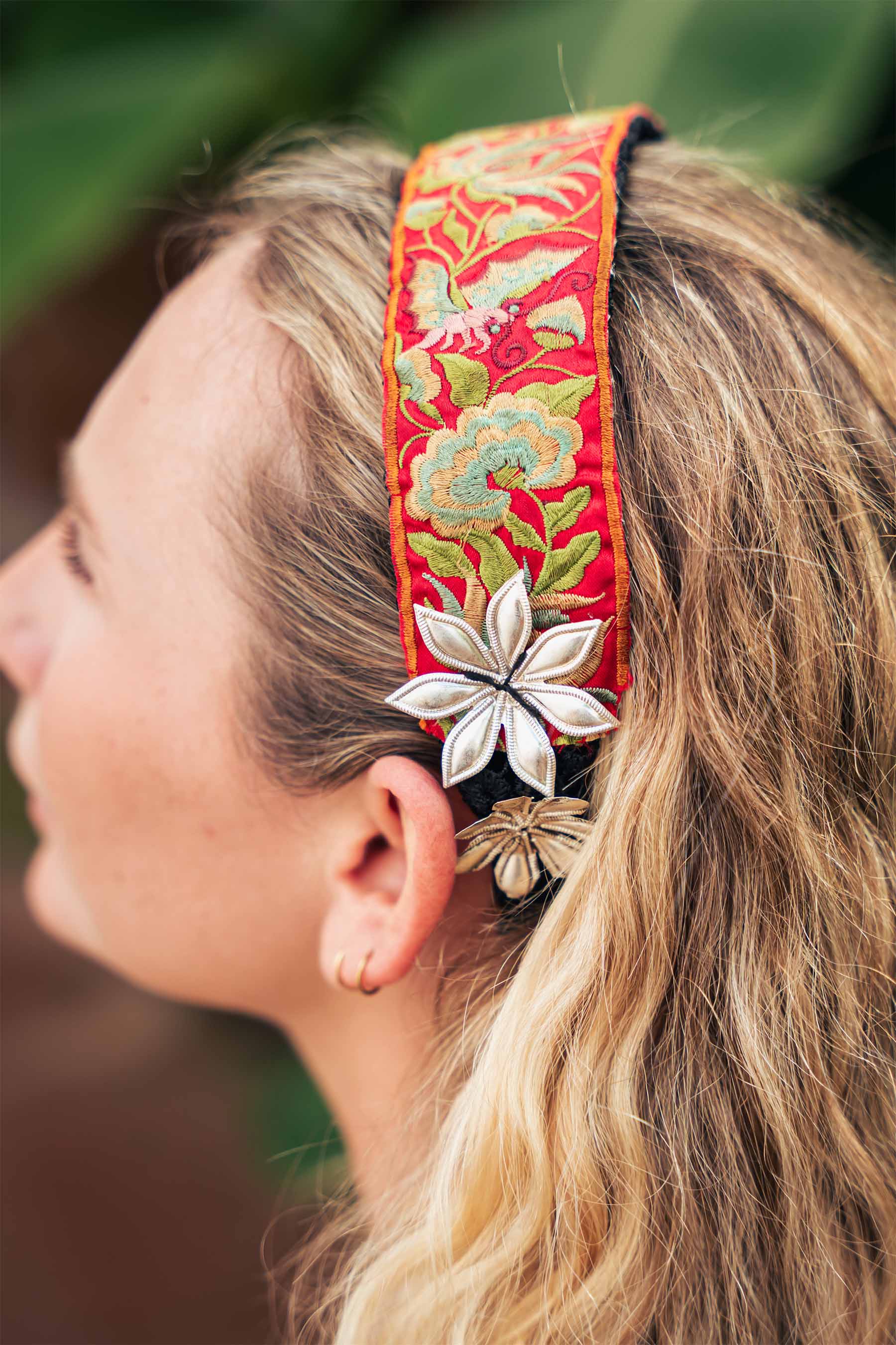 Diadema artesanal de la etnia Miao, compuesta por flores de alpaca.