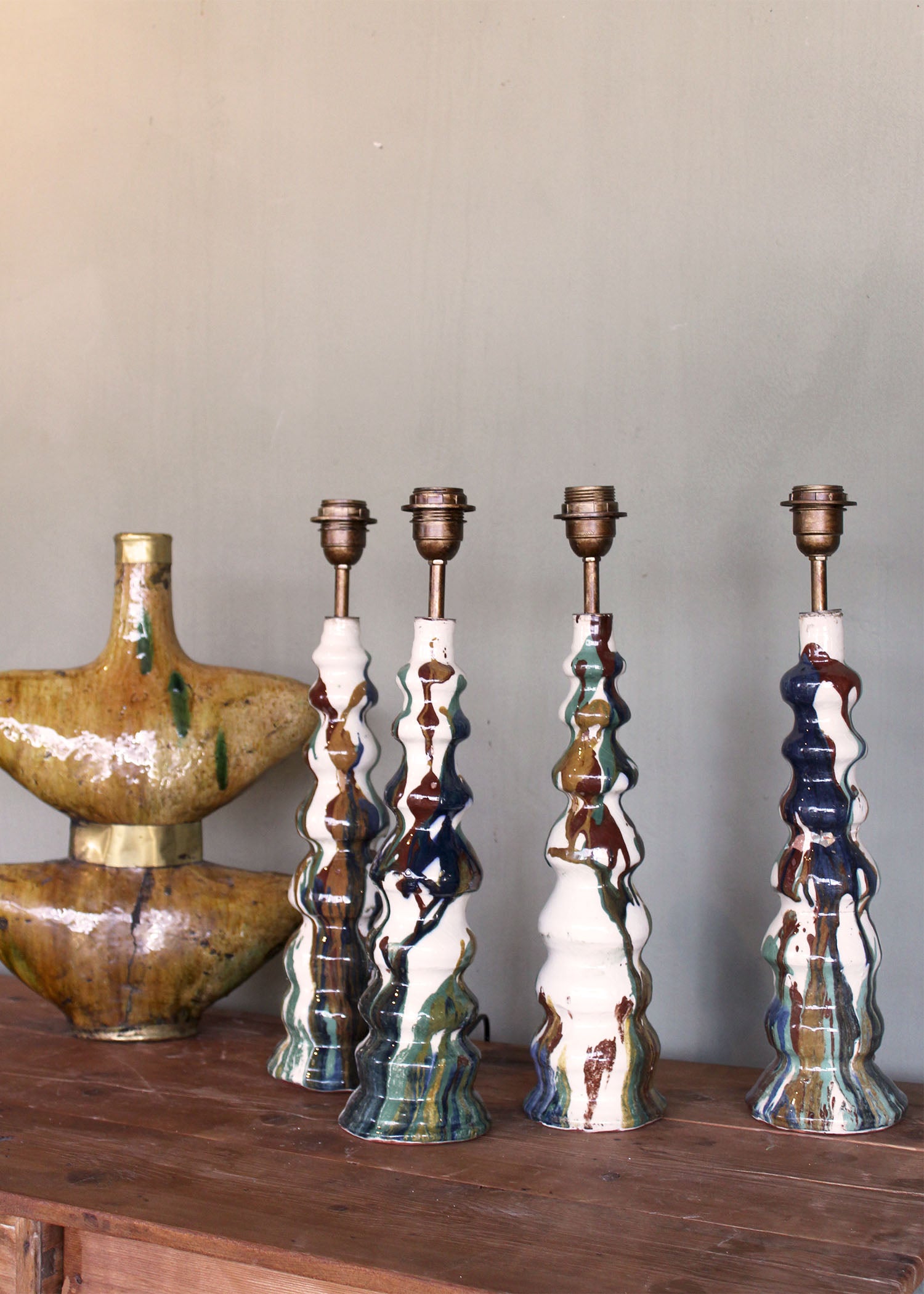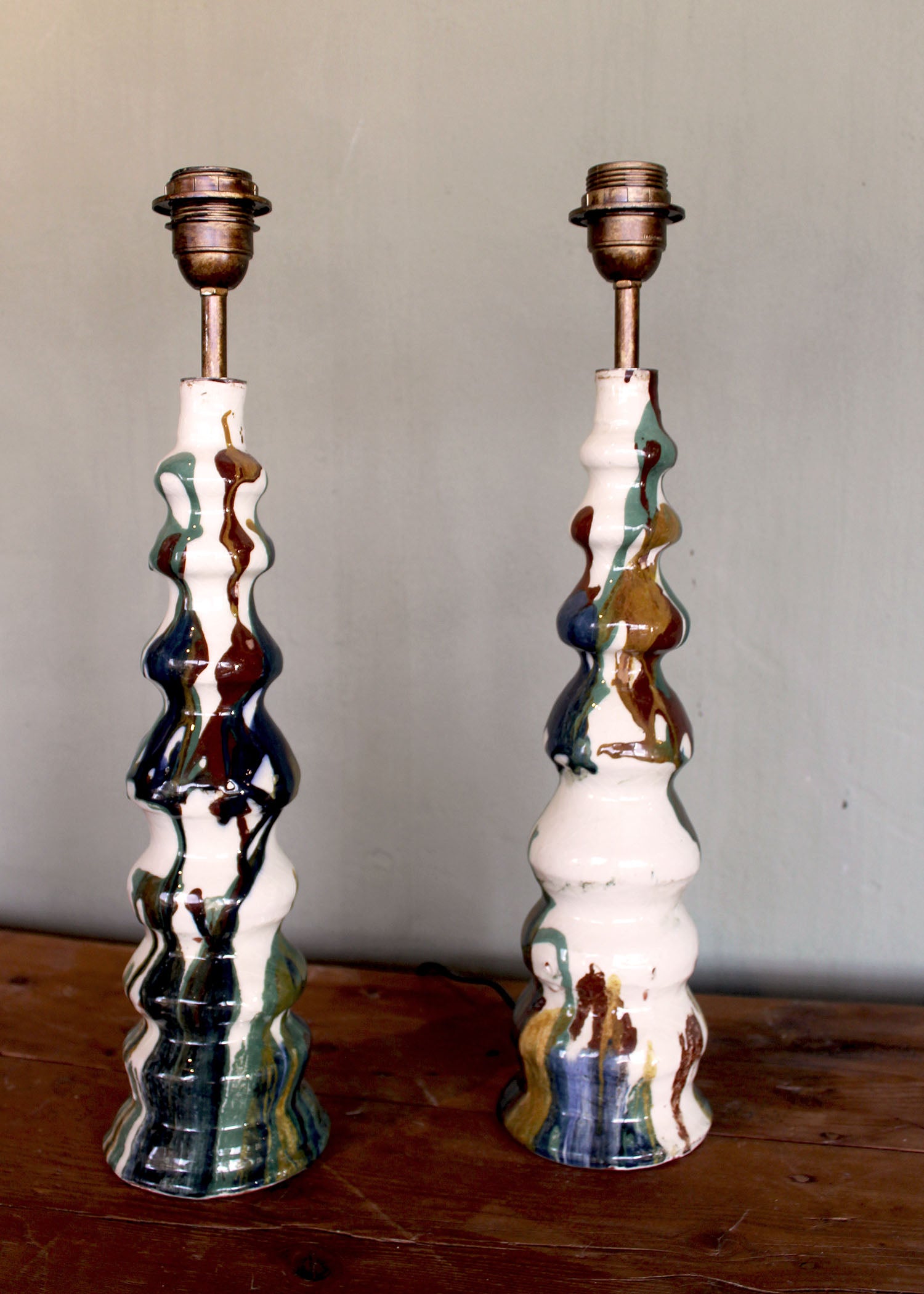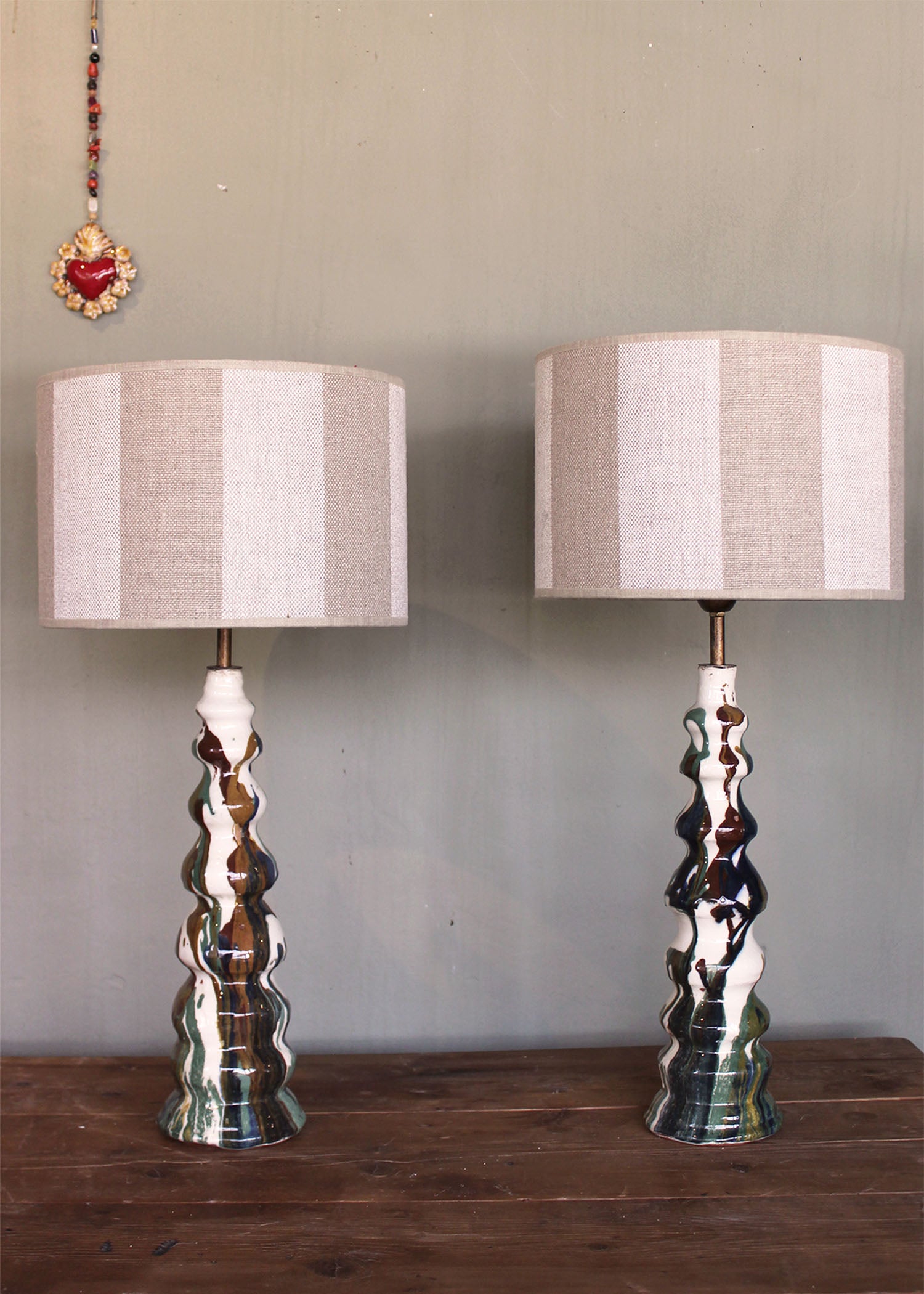 No incluye pantalla. Cada pie es distinto ya que están hechos artesanalmente.