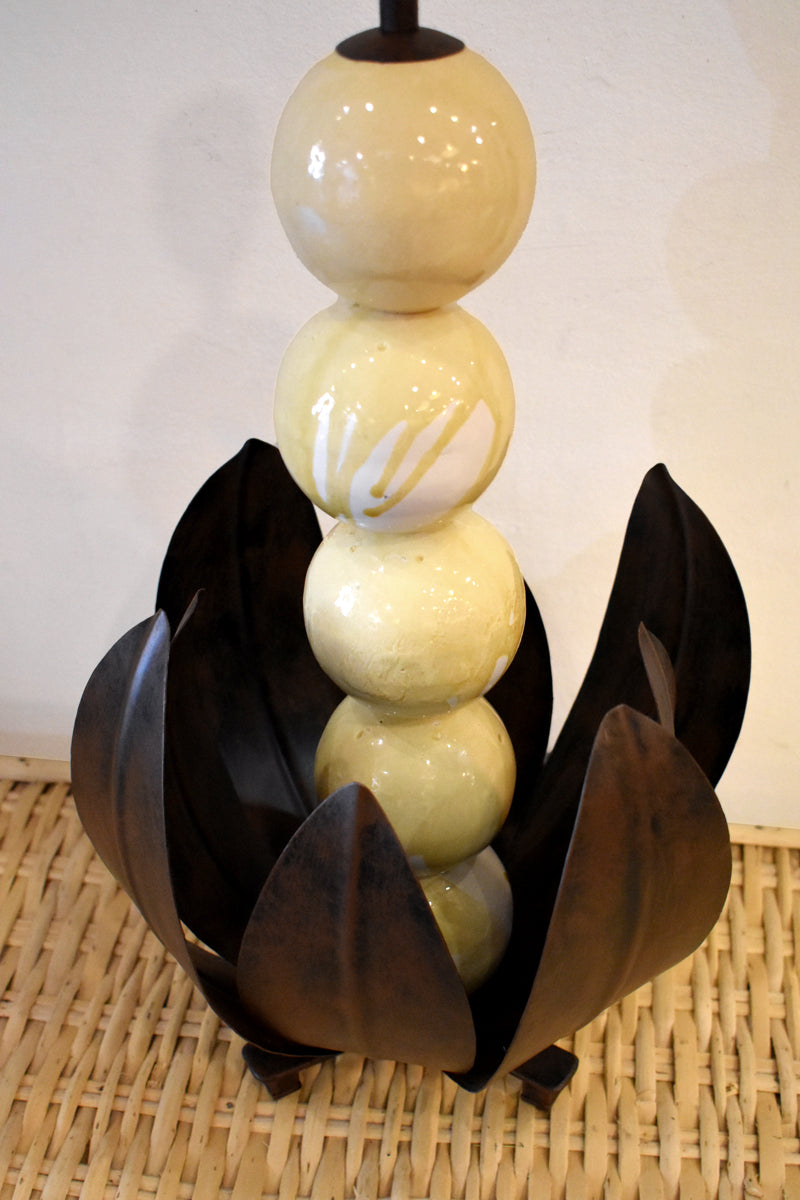 Pie de lámpara de 5 bolas de cerámica y soporte de flor en hierro.