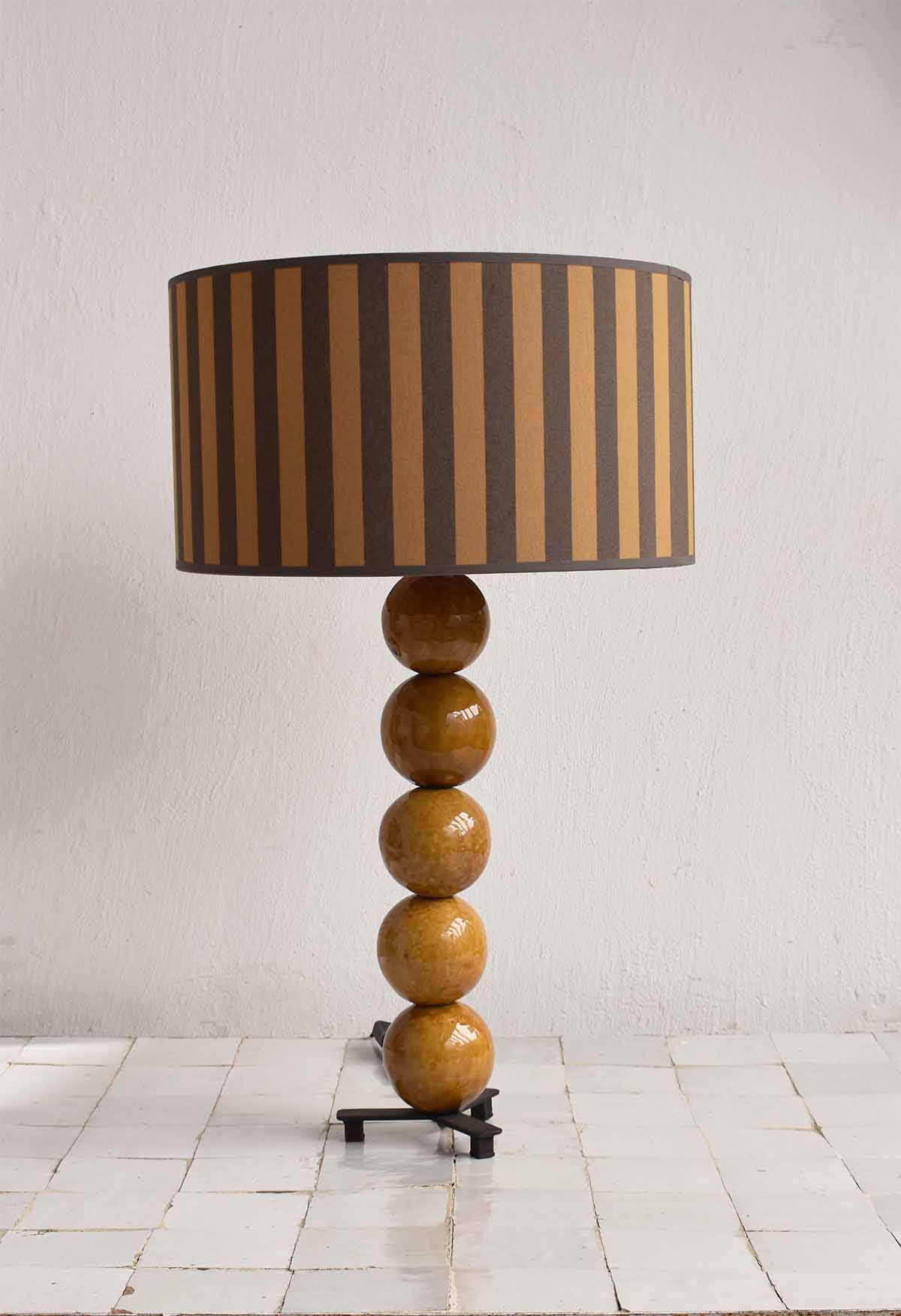 Pantalla cilíndrica de algodón a rayas y cinta gris.