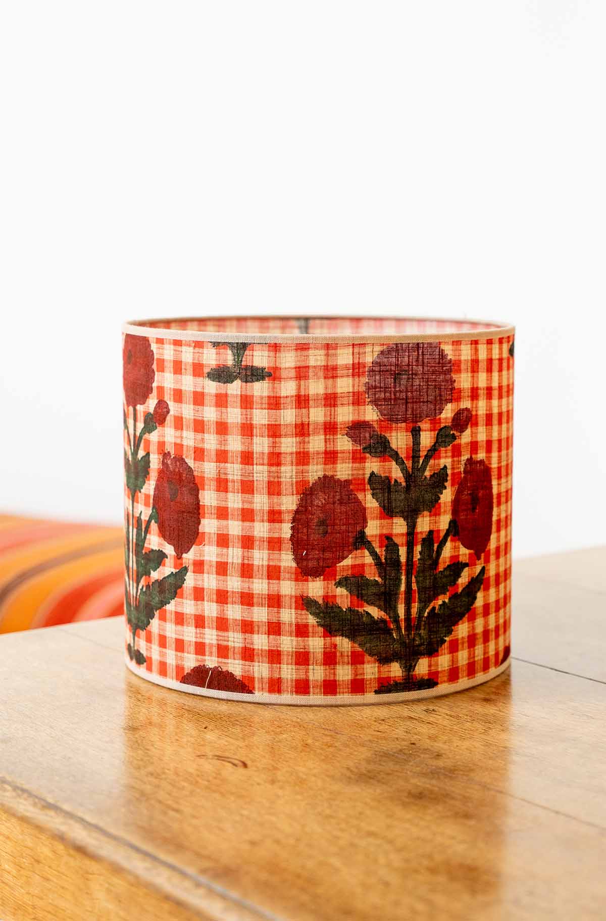 Pantalla cilíndrica de algodón a cuadros con block print de flor.