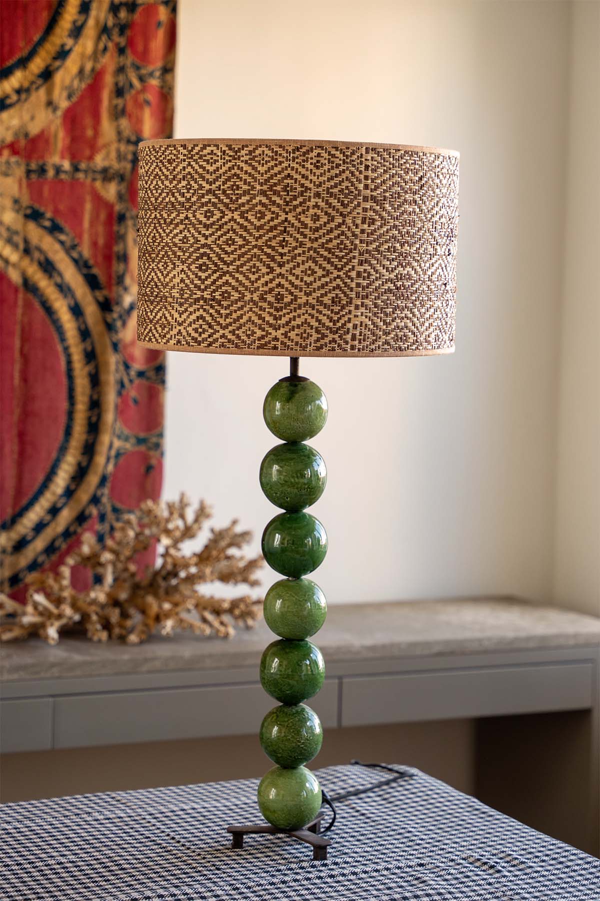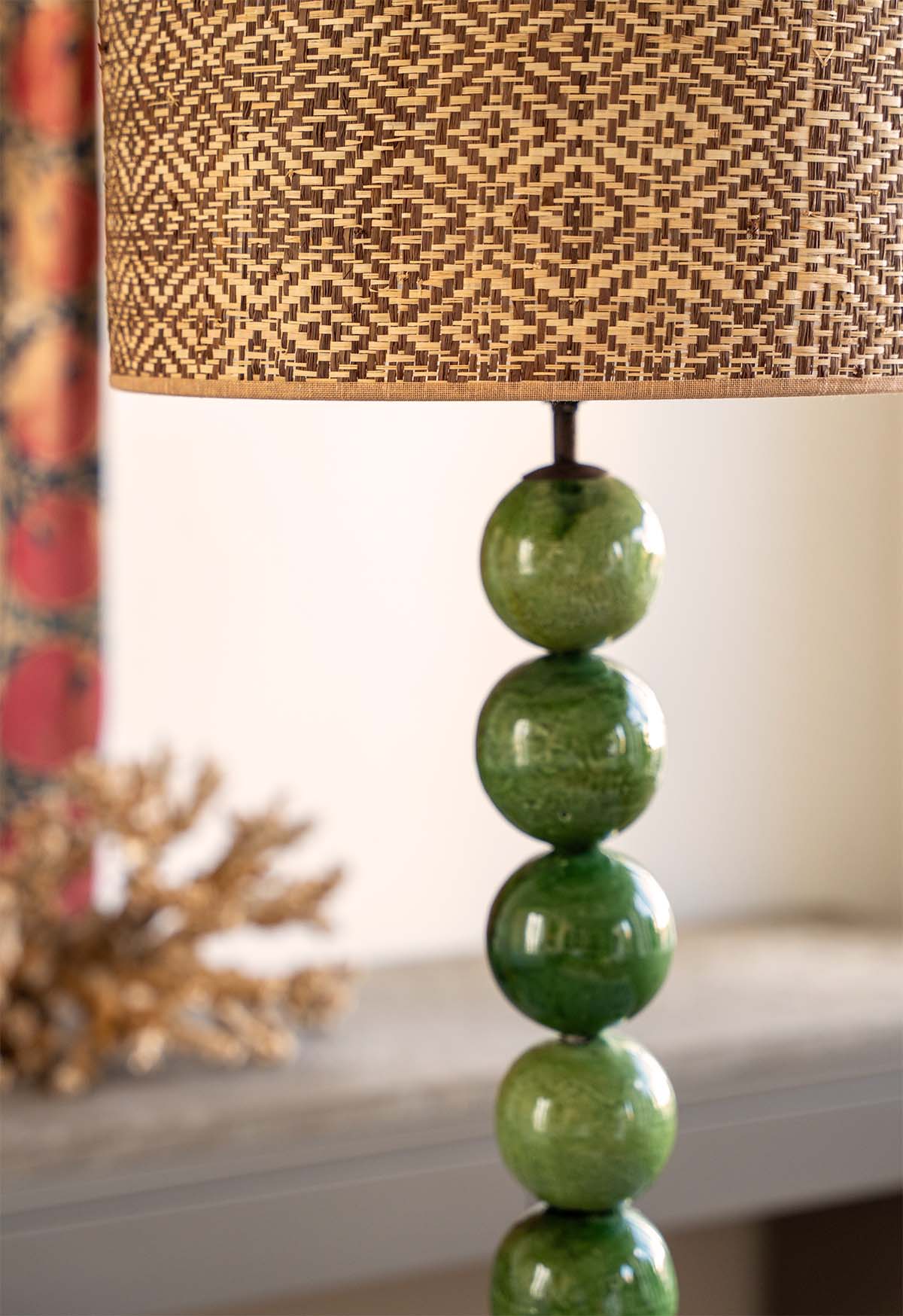 Pie de lámpara de 7 bolas de cerámica en verde.